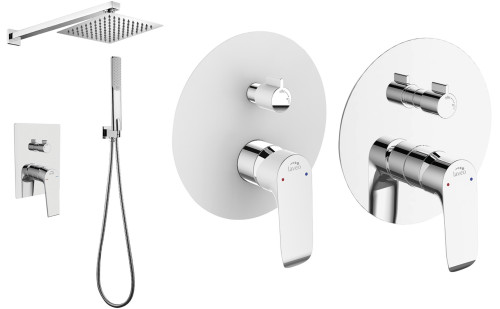 W serii PLATO znajduje się podtynkowy komplet natryskowy, na który składa się jednouchwytowa bateria, deszczownica oraz słuchawka prysznicowa. Całość instalacji została wykończona w modnym chromie, ożywiającym przestrzeń prysznicową.