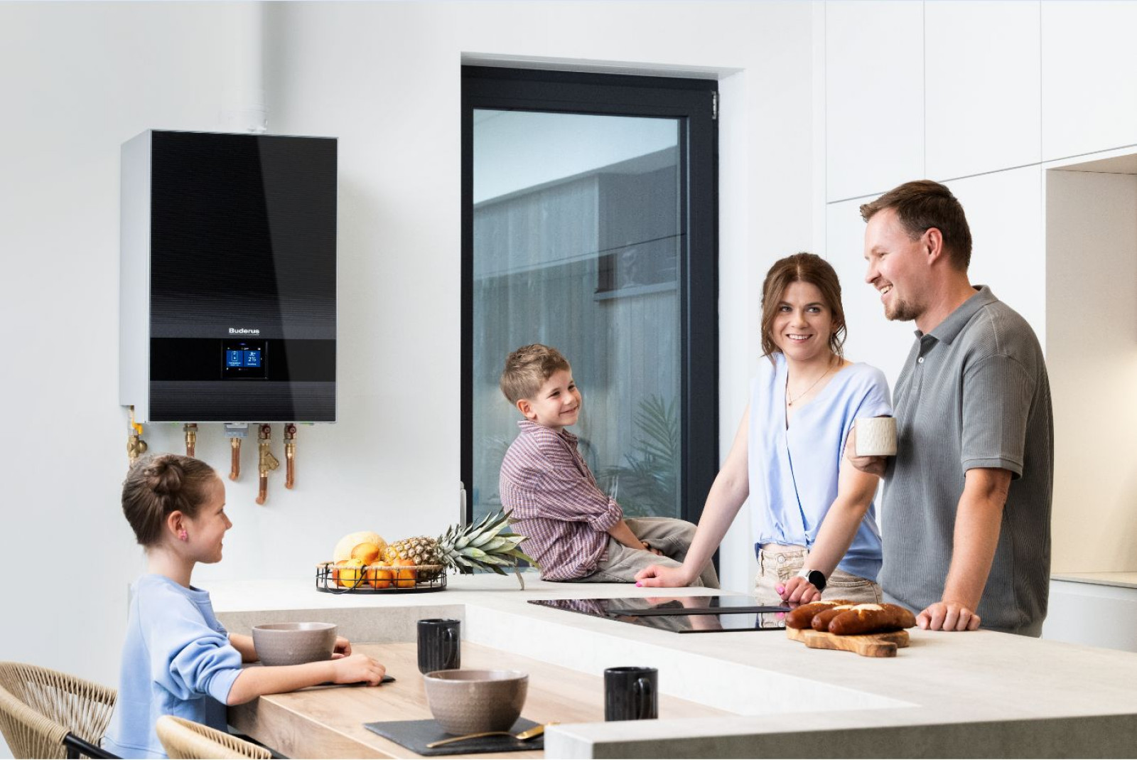 Po czwarte, nowoczesne sterowanie: kolorowe, dotykowe panele ułatwiają obsługę wielu obiegów grzewczych, a sterowanie z poziomu aplikacji MyBuderus daje kontrolę nad ogrzewaniem z telefonu. W kotłach dwufunkcyjnych, takich jak Logamax plus GB172i.2, dostępna jest funkcja „booster” poprawiająca komfort ciepłej wody.