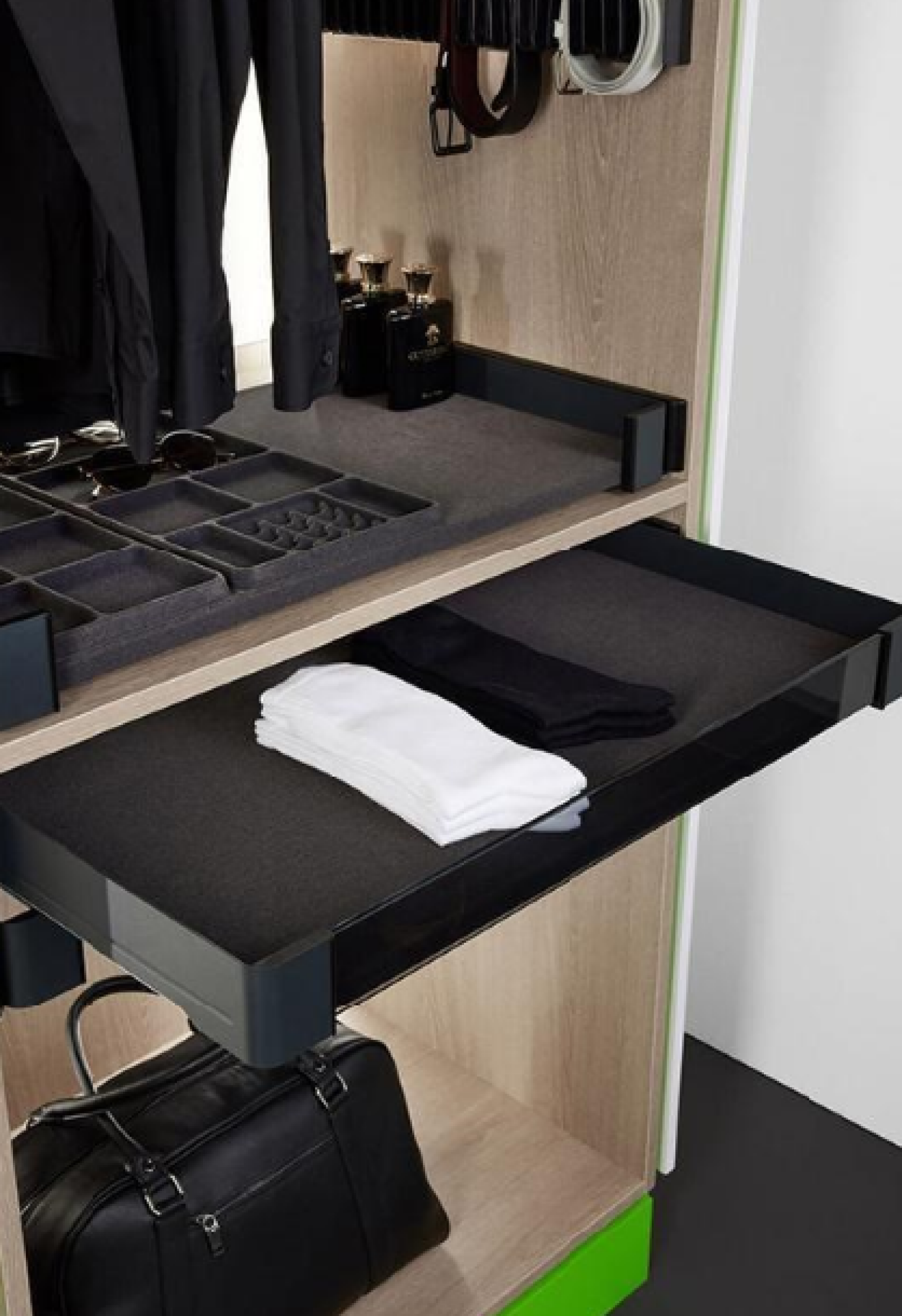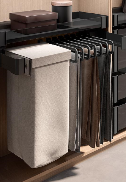 System CONERO SET umożliwia przechowywanie spodni w sposób klarowny i praktyczny, co znacznie ułatwia codzienny dobór stroju i skraca poranki. Dzięki temu rozwiązaniu w garderobie panuje porządek, a każdy element odzieży pozostaje pod ręką, nie ginie wśród innych ubrań i nie wymaga długiego przeszukiwania.