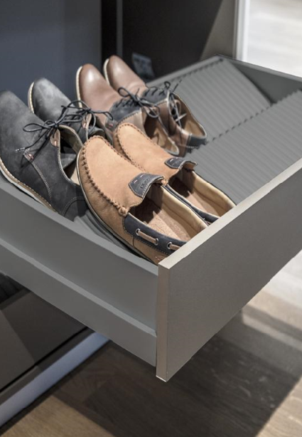 Wkłady na buty do szuflad to praktyczna alternatywa dla tradycyjnych półek, która łączy ochronę z estetyką. Obuwie pozostaje wolne od kurzu, a jednocześnie łatwo dostępne, dzięki czemu codzienne decyzje modowe stają się prostsze i szybsze. Dzięki temu rozwiązaniu każdy element garderoby ma swoje miejsce, a porządek nie ulega rozproszeniu nawet przy intensywnym rytmie dnia.