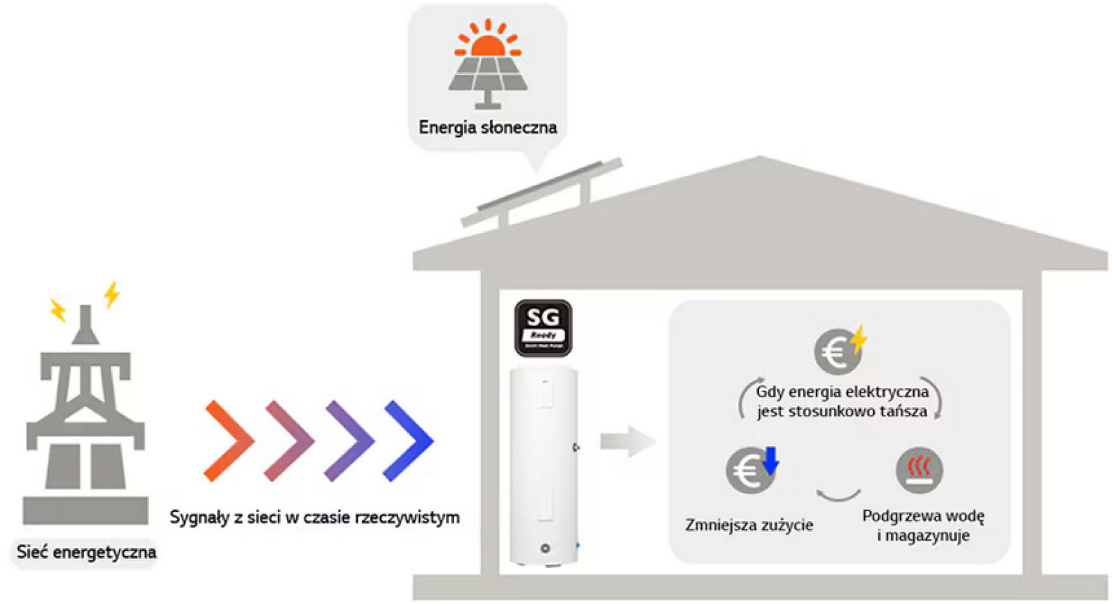 Jednym z kluczowych elementów jest gotowość do pracy w systemie Smart Grid. Urządzenia LG mogą automatycznie reagować na sygnały z sieci energetycznej i w czasie rzeczywistym dostosowywać tryb pracy, podgrzewając wodę wtedy, gdy energia elektryczna jest tańsza. Dzięki temu domowy system zyskuje możliwość oszczędnego zarządzania energią, a użytkownik nie musi samodzielnie śledzić zmian cen - sprzęt robi to za niego.