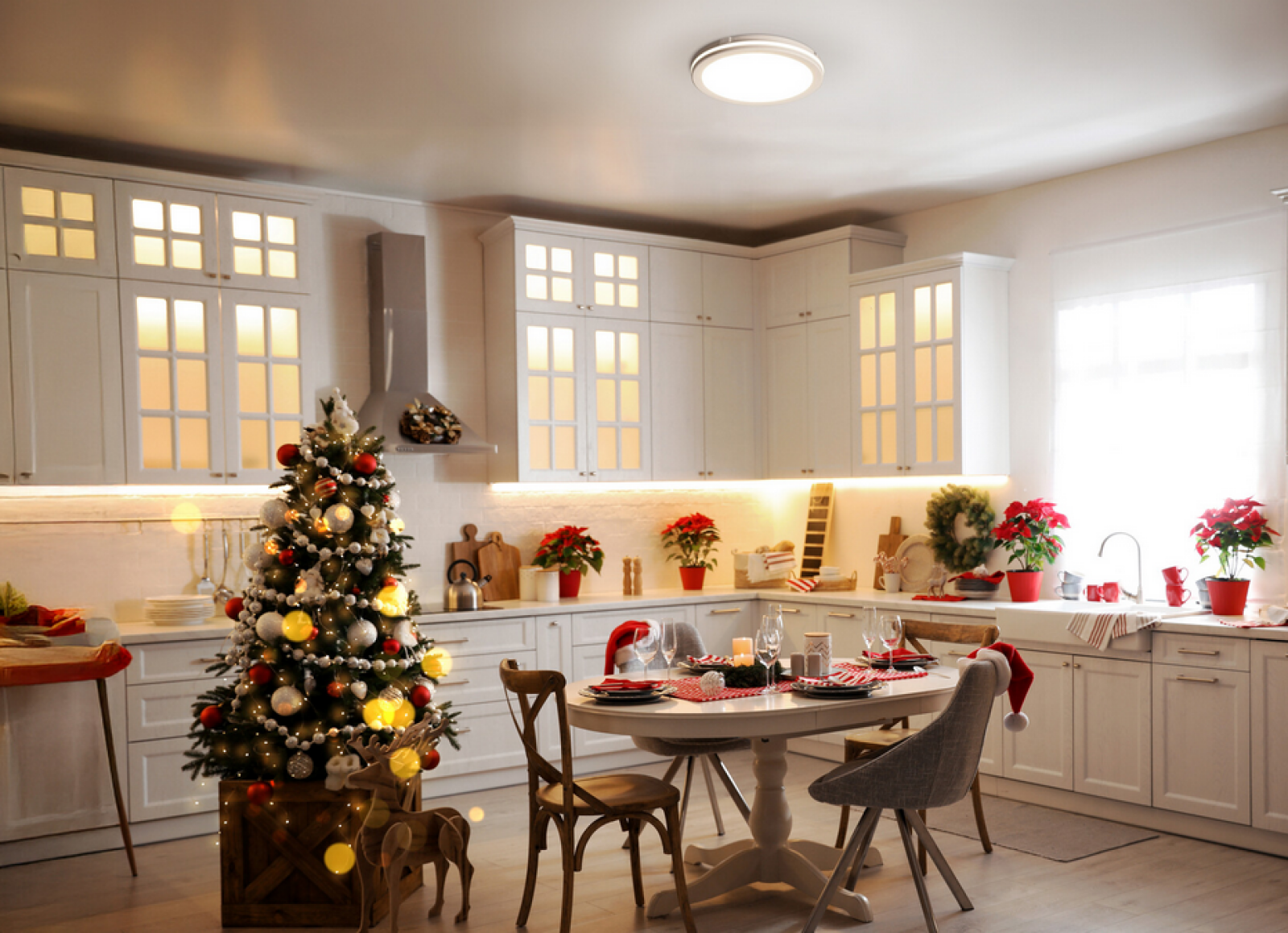 W niskich wnętrzach lepiej sprawdzają się plafoniery, które nie „zabierają” wysokości i dają równe rozproszenie. Kanlux BENO ECO LED zapewnia miękkie światło do codzienności, a możliwość dopasowania barwy pomaga przejść od spokojnego relaksu do bardziej uroczystej sceny przy wigilijnym stole. I jest jeszcze jeden pewniak, którego nie da się podrobić: świece. Ich ciepły płomień w połączeniu z zielonymi gałązkami, szyszkami, bombkami czy suszonymi owocami tworzy kompozycję, która od razu wygląda „świątecznie”, nawet bez nadmiaru ozdób.