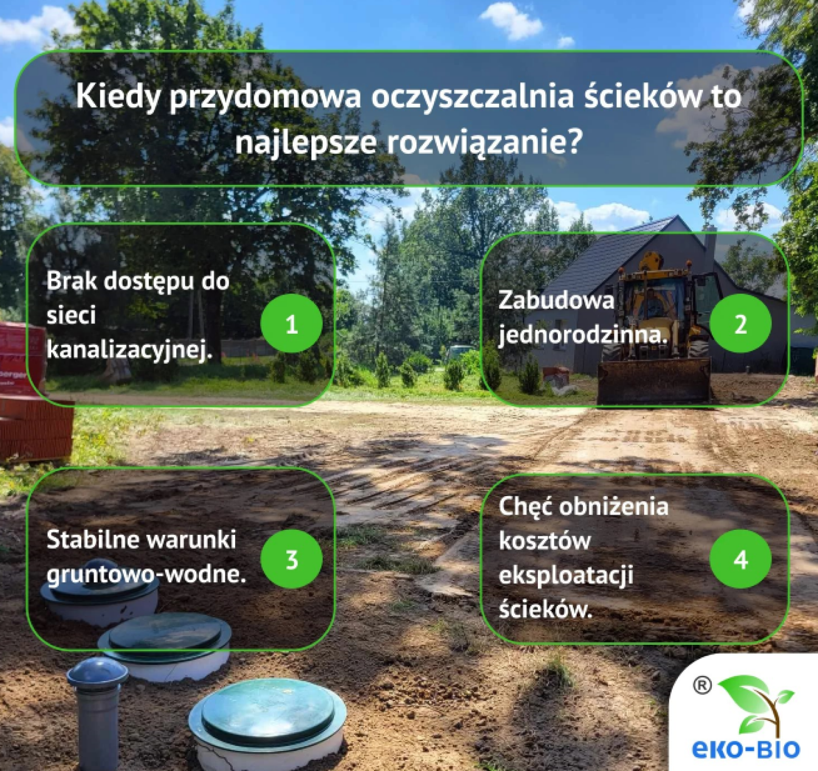 Przydomowa oczyszczalnia to optymalny wybór przede wszystkim tam, gdzie nie ma dostępu do sieci kanalizacyjnej. W zabudowie jednorodzinnej, na potrzeby własnego gospodarstwa domowego, takie rozwiązanie staje się naturalnym sposobem na bezpieczne i ekonomiczne odprowadzanie ścieków.
