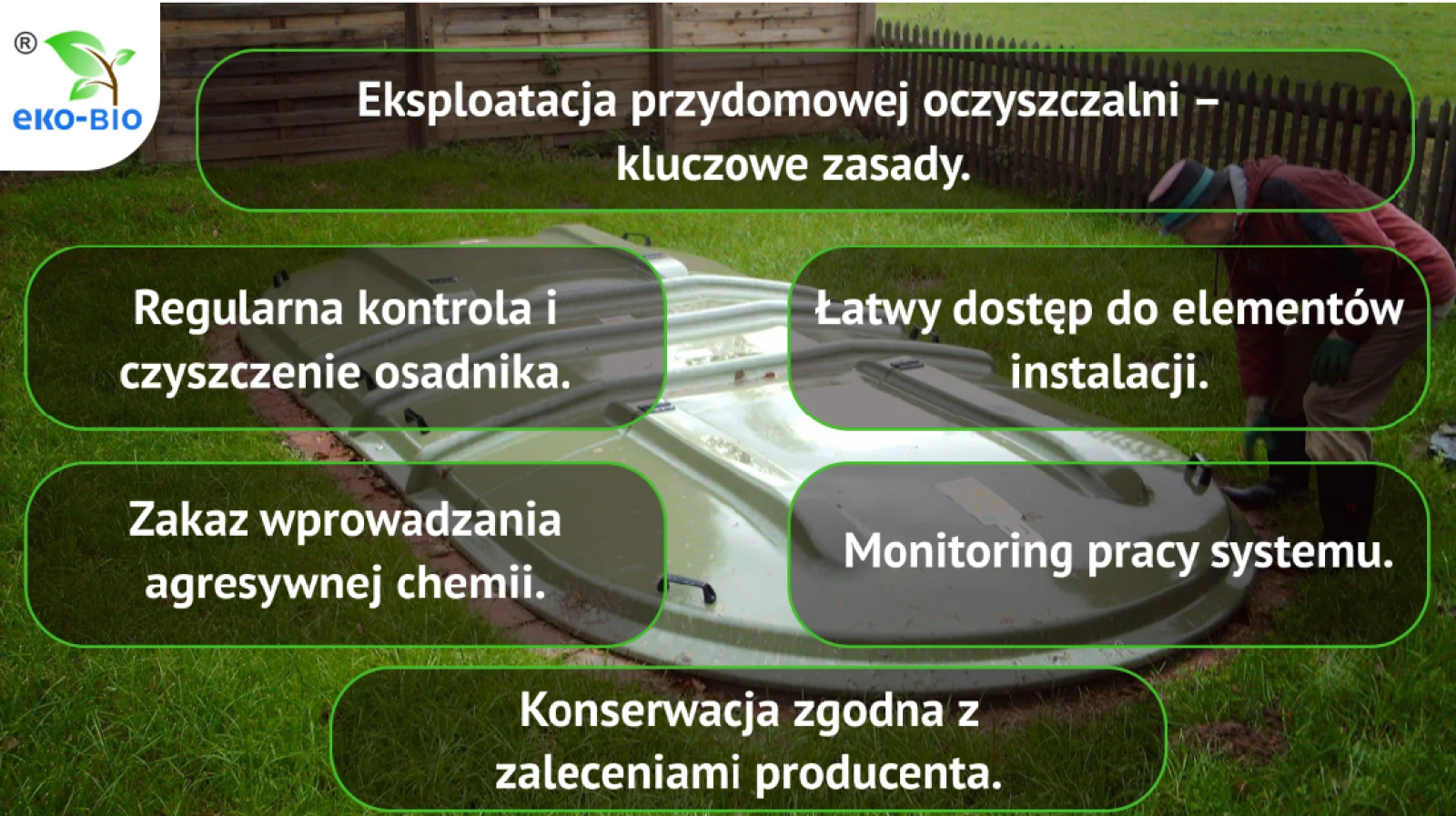 Aby utrzymać instalację w pełnej sprawności, niezbędna jest systematyczna eksploatacja. Kluczowym elementem jest regularne czyszczenie i kontrola osadnika gnilnego, który wpływa na przepustowość i skuteczność oczyszczania. Ważny jest także wygodny dostęp do wszystkich elementów, co ułatwia serwis.