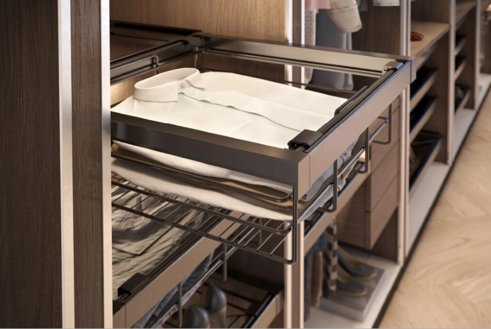 Można jednak temu zaradzić poprzez wymianę prowadnic na np. kulkowe, które pozwalają też (w zależności od modelu) na pełne wysunięcie. Dzięki temu zyskujemy łatwy dostęp do znajdujących się wewnątrz przedmiotów, eliminując potrzebę uciążliwego szukania rzeczy na samym dnie głębokiej zabudowy.