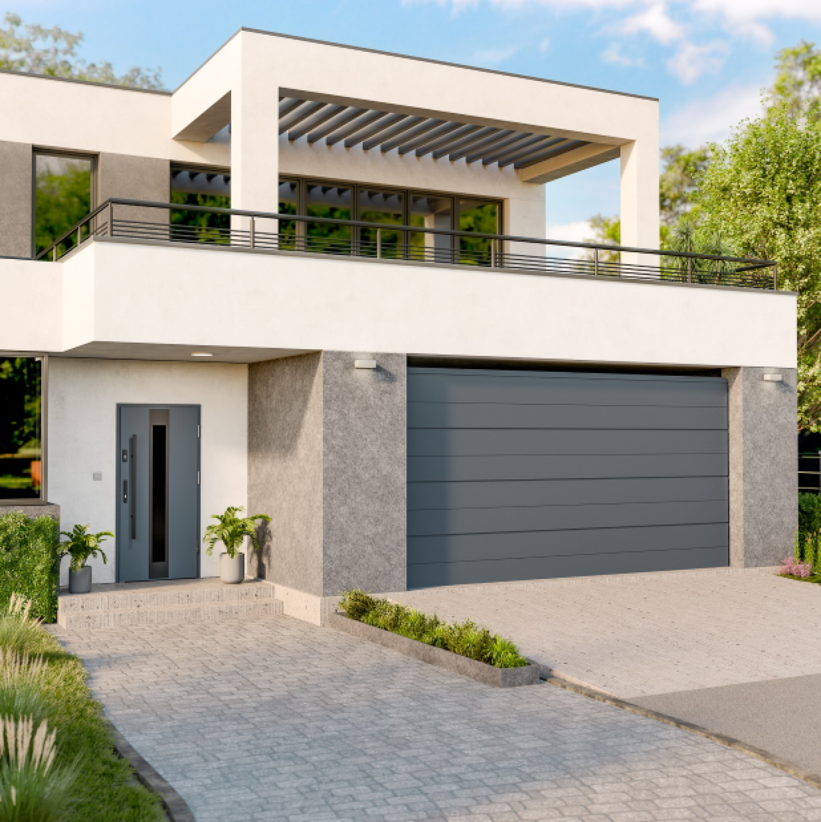 Segmentowe bramy garażowe zbudowane są z połączonych paneli poruszających się wzdłuż prowadnic. Otwierają się pionowo, podsuwając pod sufit, co oznacza, że nie zajmują miejsca przed garażem. To rozwiązanie idealne zarówno do domów jednorodzinnych, jak i niewielkich posesji, gdzie liczy się każdy metr przestrzeni. Dodatkową zaletą jest bardzo dobra izolacyjność termiczna – panele wypełnione pianką poliuretanową ograniczają straty ciepła i pomagają utrzymać stabilną temperaturę wewnątrz garażu.