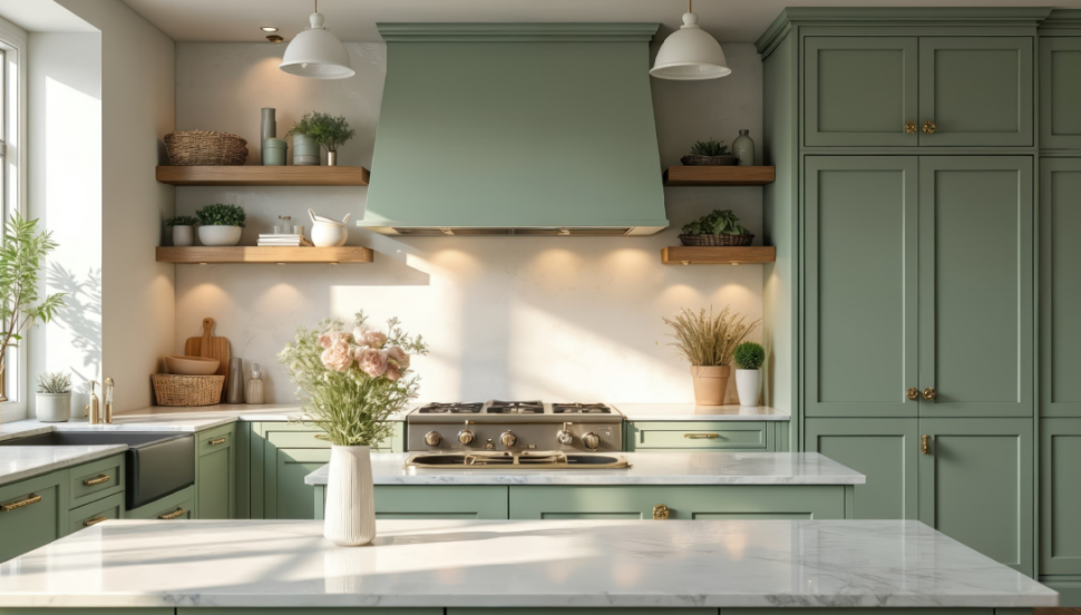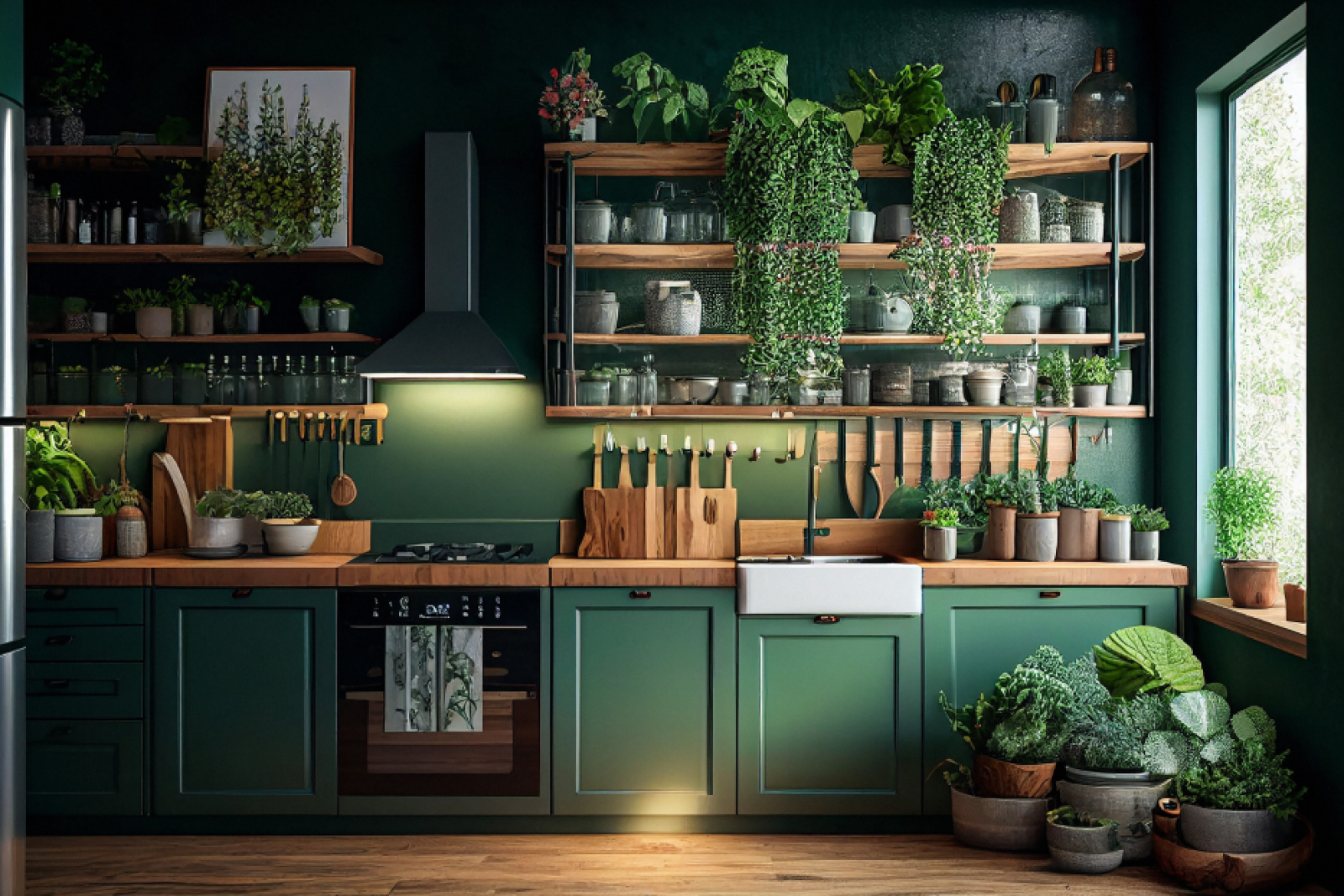 Odwaga również ma swoje miejsce w zielonych aranżacjach. Zestawienie zieleni z czernią lub grafitem nadaje przestrzeni wyrazistego charakteru i elegancji, idealnie sprawdzając się w loftach, minimalistycznych wnętrzach czy otwartych planach. Ciekawym akcentem mogą być także dodatki w kolorze złota lub mosiądzu - w subtelnych detalach, takich jak uchwyty, listwy czy ramy, zyskamy efekt luksusowego wykończenia bez nadmiaru ornamentów.