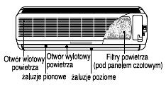 Wloty i wyloty powietrza należy oczyścić miękką, suchą tkaniną. Jeśli zabrudzenia są trudne do usunięcia można użyć letniej wody lub łagodnego środka czyszczącego o odczynie obojętnym (np. roztwór wody z mydłem). Nie wolno używać przy czyszczeniu klimatyzacji żadnych ostrych, żrących środków!