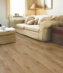 Podłogi z wzorem jasnego dębu, buku lub klonu mogą sprawić, że ciemny pokój stanie się bardziej słoneczny i wprowadzić do niego spokojniejszą atmosferę.