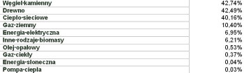Według statystyk GUS-u w Polsce aż 50% gospodarstw domowych wykorzystuje ogrzewanie na paliwa stałe (głównie węgiel i drewno), a 40% pobiera ciepło z sieci. Jedynie 10% gospodarstw ogrzewa dom gazem ziemnym. Pozostała niewielka część opiera się na paliwach ciekłych (gaz, olej opałowy) i innych źródłach ciepła. Rozwiązania ekologiczne są jeszcze mniej popularne – kolektory słoneczne wykorzystuje jedynie jedno gospodarstwo domowe na 300, a pompy ciepła – jedno na 3000. Ogrzewanie elektryczne stosuje się sporadycznie, raczej do dogrzewania pomieszczeń niż jako główne źródło ciepła.