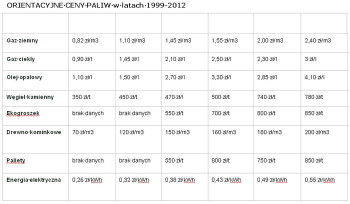ORIENTACYJNE CENY PALIW w latach 1999-2012