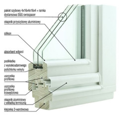 Ponadto cechuje się dużą odpornością na działanie czynników mechanicznych. Okno EC 90 jest wykonane z drewna sosnowego pochodzącego z obszaru leśnego racjonalnie zarządzanego, o czym świadczy posiadany certyfikat FSC. Konstrukcja skrzydła wykonana z drewna klejonego warstwowo ma grubość 90 mm, co skutecznie zapobiega utracie ciepła, jak również umożliwia instalację zestawu trójszybowego.