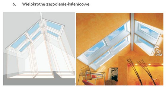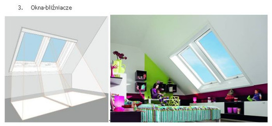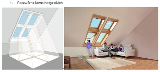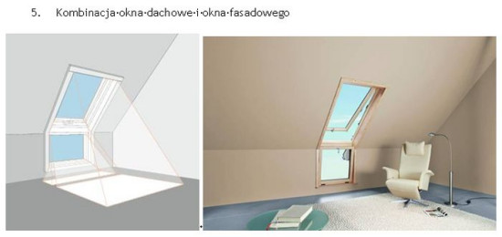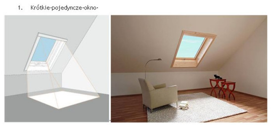 W tym przypadku sprawdzają się okna wysokoosiowe z osią obrotu w ¾ wysokości skrzydła (Roto Designo R7) lub okno uchylno-wysokoosiowe (Roto Designo R8) o 2 systemach otwierania z osią obrotu na górnej krawędzi ościeżnicy oraz w ¾ wysokości. Szerokość okna należy dobierać tak, aby nie zachodziła konieczność ingerencji w konstrukcję nośną dachu.