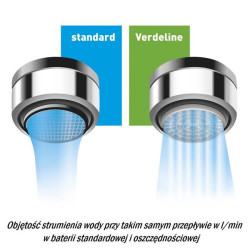 Przez standardowe baterie, przy pełnym otwarciu, przepływa ok. 12-16 litrów w ciągu minuty. Rozwiązania stosowane w bateriach oszczędnościowych pozwalają, praktycznie w sposób niezauważalny dla użytkownika, zredukować tę ilość do 4,5-8 litrów na minutę. Łatwo możemy zaobserwować ten proces podczas napełniania wodą dużego zbiornika za pomocą baterii z oszczędnościowym perlatorem. Chociaż na pierwszy rzut oka strumień jest widocznie szerszy od tego, który wypływał ze standardowej baterii, jednak do zapełnienia zbiornika potrzebujemy wyraźnie więcej czasu. Warto też zwrócić uwagę na system EasyClean, który powinny posiadać oszczędnościowe baterie i natryski.