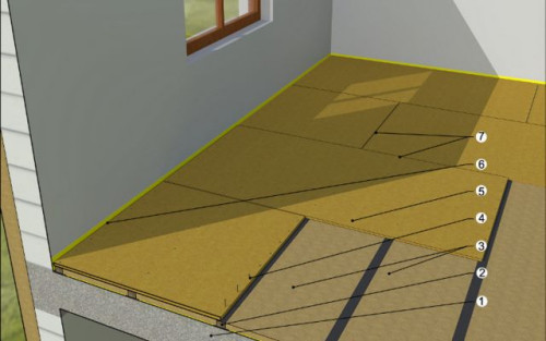 Powłokę układamy na zakład szerokości co najmniej 10 cm i łączymy taśmą klejącą. Następnie rozkładamy pasy izolacji akustycznej, na których leżeć będą legary. Są to najczęściej elementy z gumy technicznej lub filcu.