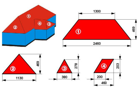 Wszystkie wymiary służące do obliczania długości i ilości zamawianych arkuszy powinny być zdejmowane z gotowego, skonstruowanego dachu lub więźby. Przy podawaniu wymiarów należy każdą płaszczyznę zwymiarować w sposób jednoznaczny, podając wysokości mierzone wzdłuż spadku połaci.