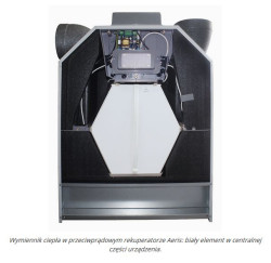 W wymienniku ciepła 'spotykają się' dwa strumienie powietrza: wyciąganego z pomieszczeń i nawiewanego do pomieszczeń. To tutaj odbywa się wymiana energii pomiędzy strumieniami. Choć strumienie nie mieszają się, przekazują sobie energię: przede wszystkim ciepło.