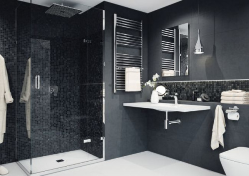 Gdy oszczędność wody nie jest priorytetem możemy pomyśleć o rozwiązaniach, które zapewnią nam wyjątkowe doznania zmysłowe. Deszczownie talerzowe o imponujących rozmiarach lub zestawy natryskowe z deszczowniami o regulowanych przegubach mają jedno zadanie – skąpać nas w strugach ulewnego deszczu. Taką propozycję odnajdziemy w łazienkach black and white - designerskiej łazience z otwartym prysznicem (zestaw natryskowy Ponta) oraz luksusowej, w ciemnej tonacji, z deszczownią zamontowaną pod sufitem i estetyczną baterią natryskową podtynkową Kvadro.