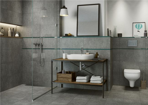 W kilku ostatnich latach daje się zaobserwować prawdziwy "boom" na beton i wnętrza wypełnione szarością. Materiały wykończeniowe w tym kolorze doskonale sprawdzają się w nowocześnie urządzanych domach. Jeśli nie mamy ochoty na wymagający impregnacji klasyczny beton architektoniczny, wybierzmy tańsze i łatwiejsze w eksploatacji płytki ceramiczne, które wiernie go odwzorowują. Warto zdecydować się na uniwersalny gres – te same płytki możemy z powodzeniem wykorzystać na ścianie i podłodze tworząc jednolitą płaszczyznę, gotową na śmiałe dodatki. Monochromatyczność powierzchni możemy rozbić odważnymi geometrycznymi dekoracjami kolekcji Normandie, dwukolorowymi dekoracjami serii Monti czy błyszczącymi dekoracjami szklanymi Memories.