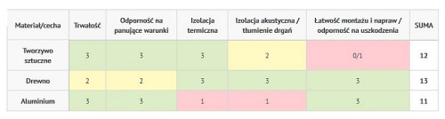 Spróbujmy stworzyć tabelę, w której od 0 do 3 ocenimy potencjał danego materiału: