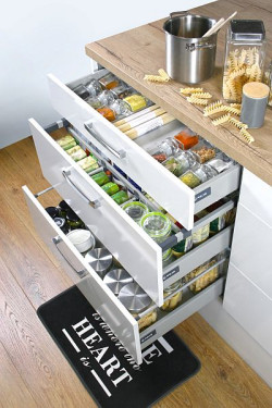 Wydaje się, że najbardziej wygodnymi układami kuchni są te w kształcie liter U, G i ewentualnie L. Dzięki temu nasz trójkąt roboczy jest bardziej zwarty, niż w przypadku kuchni jednorzędowej. Mimo, że powstaje tu "problem" szafek narożnych – nie ma się czego obawiać. Te zazwyczaj trudnodostępne miejsca można dziś zagospodarować za pomocą rozwiązań marki REJS – np. dzięki półkom Corner Optima.