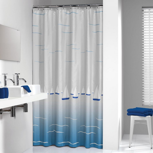 - Skojarzenia z wodą każą przede wszystkim zadbać o efektowną oprawę prysznica. W tym celu warto sięgnąć po zasłony prysznicowe z motywem żaglówek. Takim produktem jest zasłona Barca z kolekcji SEALSKIN, dostępna w asortymencie firmy CORAM. To lekki i zabawny element, który ożywi każde wnętrze.