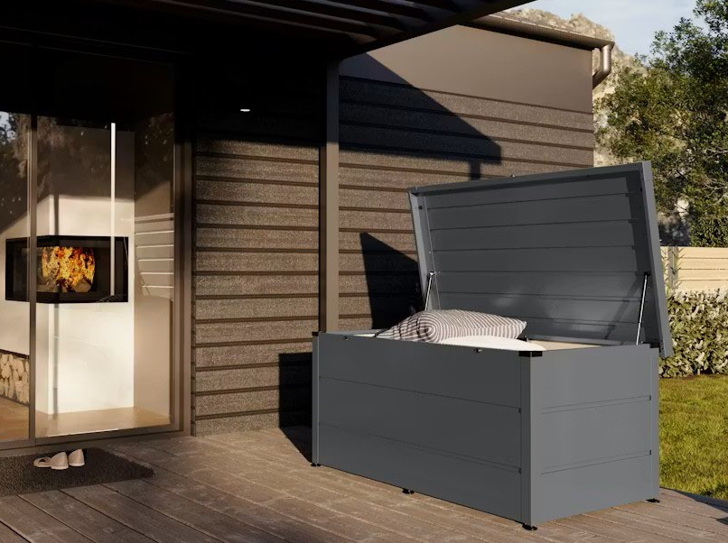 Takie parametry techniczne sprawiają, że przechowywane w niej przedmioty są chronione nie tylko przed deszczem czy wiatrem, ale również przed kradzieżą. Solidna konstrukcja sprawia, że skrzynia wygląda jak mebel ogrodowy, daje poczucie bezpieczeństwa przez cały sezon, idealnie wpisując się w nowoczesne aranżacje ogrodów i tarasów.