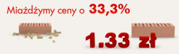 Nie przegap okazji, teraz zamiast 1,99 zł, zapłacisz za cegłę jedynie 1,33 zł z VAT*. To nowa cena cegły klinkierowej czerwonej kl.35! Kupując cegły FCB Jopek zapłacisz teraz 33% mniejszą cenę!