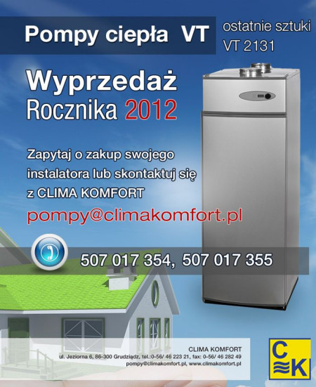 Wydatki na ogrzewanie to jeden z najistotniejszych składników kosztów utrzymania domu jednorodzinnego. W dobie ciągle rosnących cen tradycyjnych nośników energii poszukujemy więc alternatywy, która zapewniając wymagany komfort cieplny nie opróżni jednocześnie naszego ciężko wypełnianego portfela. Ostatnie sztuki VT 2131, śpiesz się! nie przegap promocji!