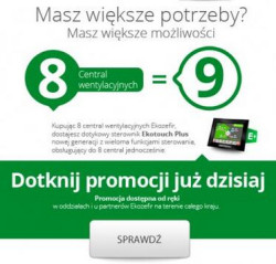 Przy zakupie 8 central wentylacyjnych Ekozefir dostaniesz od nas Ekotouch Plus - sterownik nowej generacji obsługujący aż 8 central ze sterownikami Standard lub Digital.