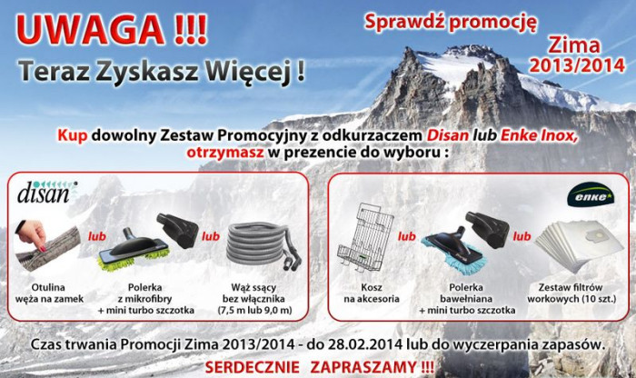 Przy zakupie odkurzacza Disan lub Enke INOX z zestawem akcesoriów wybierz jeden z prezentów!