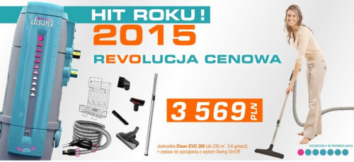 Nowa niższa cena na odkurzacz centralny Disan EVO200 z akcesoriami tylko w 2015 roku.