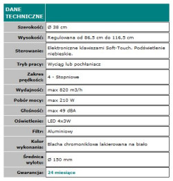Natomiast na niższych stopniach prędkości produkty Ciarko są praktycznie niesłyszalne. LEDOWE oświetlenie oraz elektroniczne sterowanie podświetlane diodami Led nadają nowoczesny wygląd okapom.