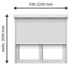 dotyczy rolet naokiennych i naelewacyjnych o szerokości w zakresie 590-2200 mm i maksymalnej wysokości rolety 2000 mm,