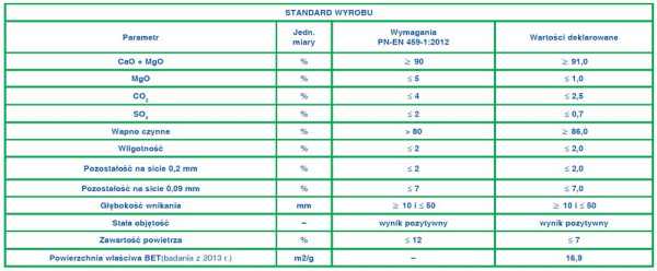 Norma: spełnia wymagania PN-EN 459-1:2012