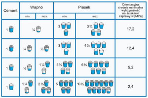 Proporcje objętościowe dla zapraw budowlanych wykonywanych na miejscu budowy |