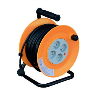 Przedłużacz bębnowy 50 m. Wyposażony w automatyczny wyłącznik termiczny.
