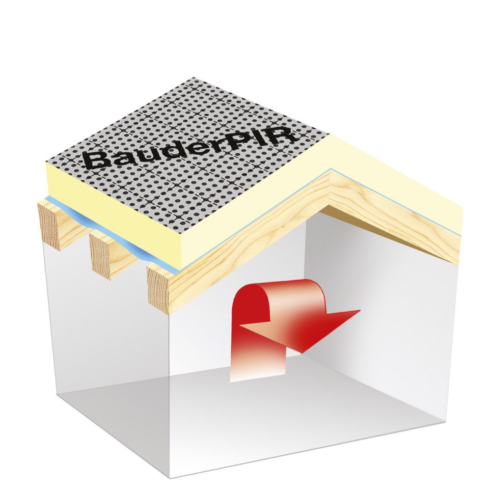 W przypadku konieczności uzyskania natychmiast gotowej do wykończenia powierzchni, warto postawić na BauderPIR TP-Kombi, gdzie dolna warstwa z gipsowo-kartonowej płyty umożliwia tapetowanie, malowanie czy tynkowanie tuż po zakończonym montażu. Do szczególnie trudnych rozwiązań lub w połączeniu z izolacją międzykrokwiową przeznaczony jest element dyfuzyjny BauderPIR AZS.