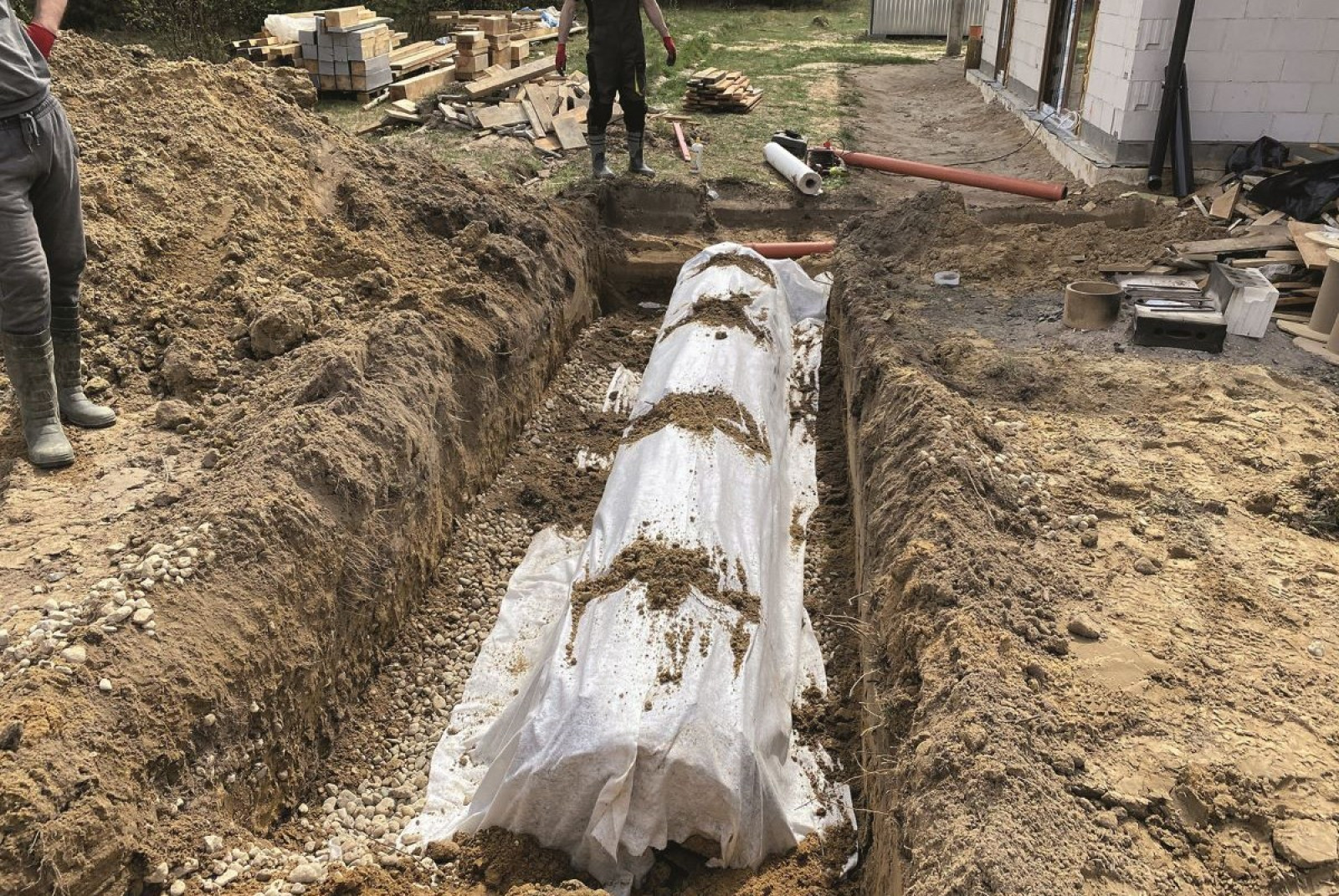 Wykonanie drenażu rozsączającego z tuneli o różnej długości, złożonych z kilku członów o wymiarach 116 x 80 x 51 cm, fot. L. Jampolska