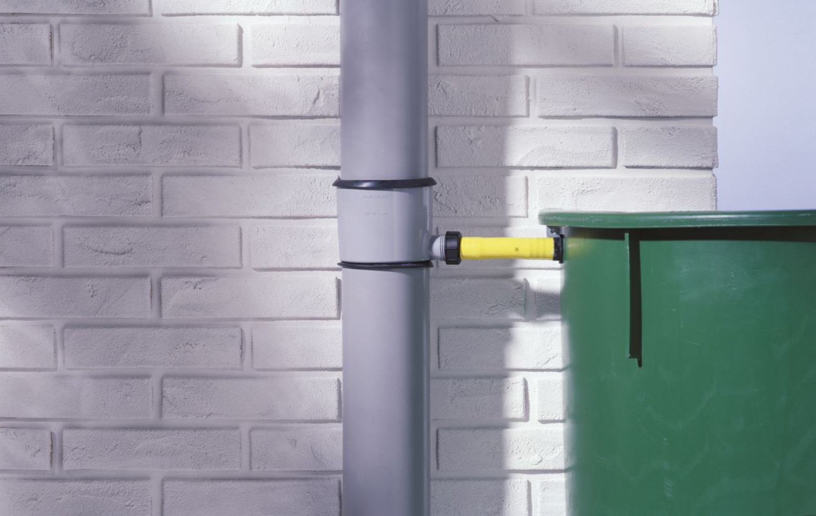 Zbiornik naziemny do zbierania wody opadowej z dachu podłącza się do rury spustowej, fot. Marley