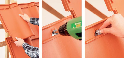 Zasada działania SturmFIX polega na mocowaniu dwóch dachówek przy użyciu zaledwie jednej spinki. Dachówki, które można mocować przy użyciu spinek SturmFix to następujące modele marki Koramic: Renesansowa Alegra 9, Renesansowa Alegra 12, Marsylka Mondo 11, Holenderka Cavus 14, Romańska Karthago 14 oraz Płaska Actua 10.