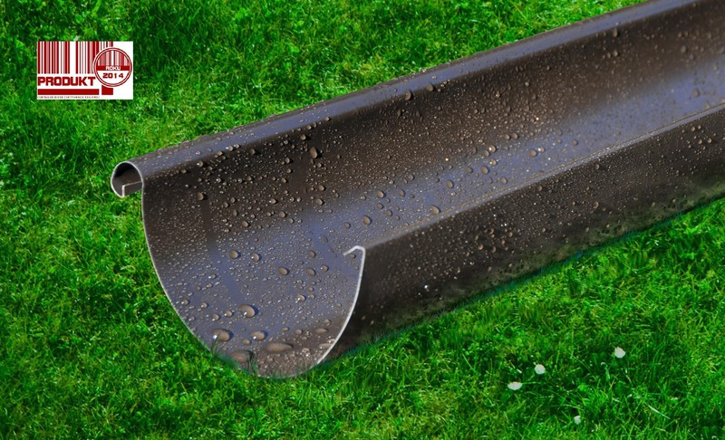 Stalowy system rynnowy jest dostępny w najbardziej popularnych kolorach: ciemnobrązowym, ceglastym, czarnym i grafitowym w rozmiarze 130/90.