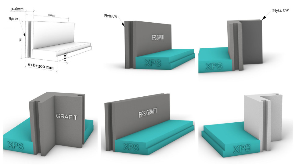 "PARATi L - element" (XPS + EPS lub tylko XPS) oraz "PARATi L - element" z płytą cementowo-włóknistą (EPS + XPS + CW lub XPS + CW)