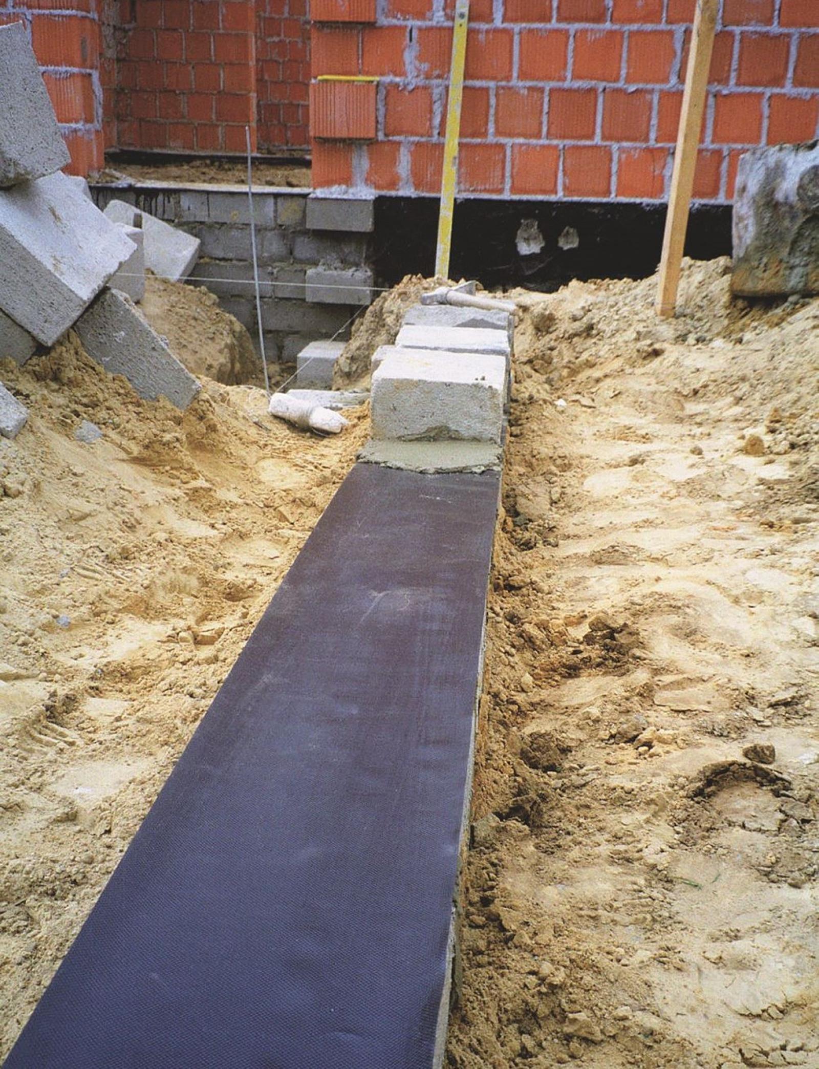 Przeciwwilgociowa izolacja pozioma ław fundamentowych, wykonana z grubej folii fundamentowej, fot. GRILTEX Polska
