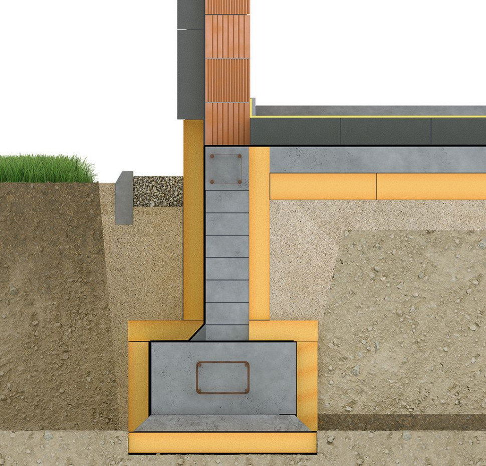 Tak naprawdę tylko izolacja ułożona wokół całych ścian i ław fundamentowych pozwala wyeliminować mostki termiczne. Ale do ułożenia pod ławami nadaje się wyłącznie XPS. Jego rodzaj powinien określić projektant. (fot. Swisspor)