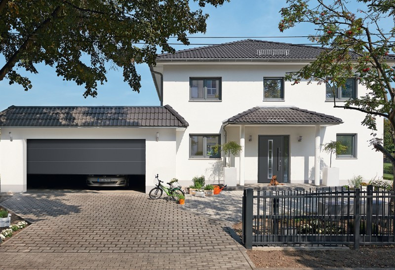 RenoMatic 2015 to brama, której ocieplane segmenty gwarantują wysoką izolacyjność cieplną, dobrą stabilność i cichą pracę bramy, a modne szerokie przetłoczenia L – nowoczesny design. RenoMatic 2015 oferowana jest z elegancką, delikatnie strukturalną i bardzo odporną na uszkodzenia powierzchnią Sandgrain w trzech kolorach: białym, antracytowym i brązowym oraz w odpornej na działanie promieni UV okleinie Decograin – imitującej drewno (Golden Oak i Dark Oak) lub w kolorze Titan Metallic CH 703.