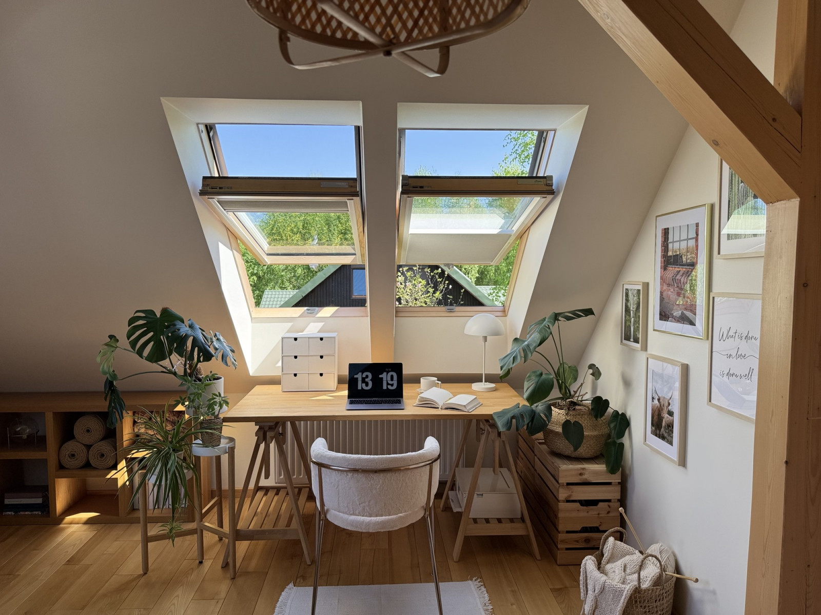 Światło wpadające przez okna dachowe na poddaszu pomogą kwiatom ładnie się rozwinąć.