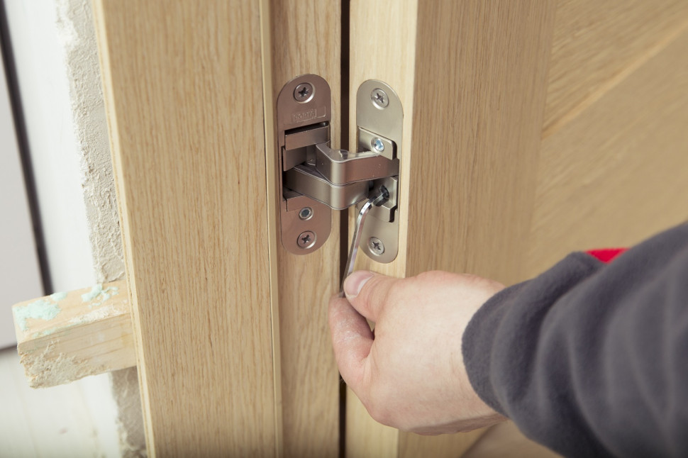 W przypadku ościeżnicy stałej, mocujemy listwy maskujące (opaskę) przy użyciu kleju montażowego. Szczelinę między opaską a ścianą wypełniamy masą akrylową. Teraz możemy zawiesić skrzydło i założyć klamkę. W razie potrzeby regulujemy zawiasy - niewyregulowane mogą powodować samoczynne otwieranie i zamykanie się skrzydła, jego skrzypienie podczas ruchu oraz ocieranie o posadzkę.