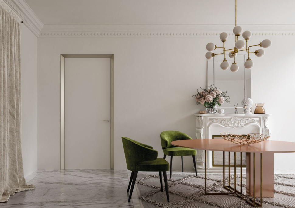 Drzwi rozwierane ukryte ECLISSE 40 są pierwszym produktem eksponującym ościeżnicę: pochylona rama wyłania się ze ściany tworząc dyskretną lecz widoczną ozdobę. Nie stanowi już wyłącznie elementu technicznego i funkcjonalnego, a przeistacza się w element ozdobno-wykończeniowy. Z jednej strony przejścia ozdobne profile pochylone pod kątem otaczają drzwi niczym rama obraz, tworząc głębię, z drugiej strony, ukryte drzwi elegancko i dyskretnie licują się ze ścianą.