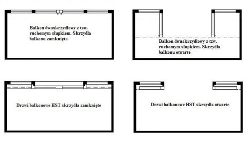 Drzwi balkonowe typu HST mogą występować w co najmniej kilku różnych wersjach i układach skrzydeł oraz części nieotwieranych. Różnorodność konstrukcji jest jedną z niezaprzeczalnych zalet tego rozwiązania.